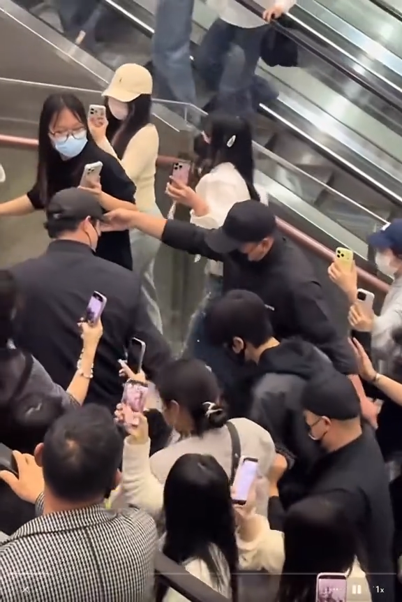 ยิ่งได้เห็นภาพอีกมุมนะบอกเลยว่า ทั้งน่ากลัวและก็น่าสงสาร นึกว่าฝูงซอมบี้ แม้จะมีพนักงานและทีมงานคอยประกบใกล้ชิด คอยนำทางสะดวกให้กับศิลปิน ทั้งผลักออกแต่กว่าจะฝ่าฝูงชนระดับนี้ได้ก็ใช้เวลานานพอสมควร