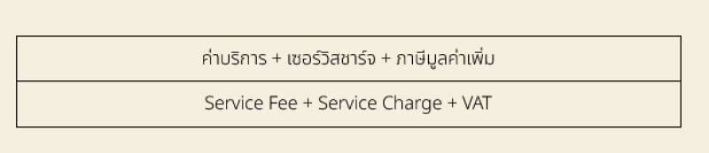 โดยปกติ ดังนั้น จากสูตร 1,000++ จะทำการคำนวณด้วยการนำ 1,000 + Service Charge 10% (โดยทั่วไปจะคิดกันที่ 10%) จึงเท่ากับ 1,100 บาท เมื่อนำมาบวก Vat ซึ่งปัจจุบันอยู่ที่ 7% จะได้ค่าบริการที่ต้องชำระสุทธิที่ 1,177 บาท