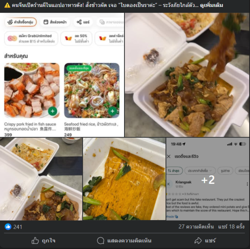ต้องบอกเลยว่ากลายเป็นโพสต์ที่ถูกพูดถึงในโลกออนไลน์อย่างมาก เมื่อได้มีผู้ใช้เฟซบุ๊กรายหนึ่งเผยประสบการณ์สุดช็อก หลังสั่งอาหารผ่านแอปพลิเคชันเดลิเวอรี่ชื่อดัง โดยเลือกเมนู ข้าวผัดราคา 249 บาท และ ผัดซีอิ๊ว 189 บาท จากร้านอาหารชื่อหนึ่ง ทว่าไม่นานกลับได้รับโทรศัพท์จากเบอร์แปลก อ้างว่า ของหมด และจะให้ อีกสาขาจัดส่งแทน พร้อมขอให้ ยกเลิกออร์เดอร์ในแอปฯ แล้วไปติดต่อผ่านไลน์ แทน